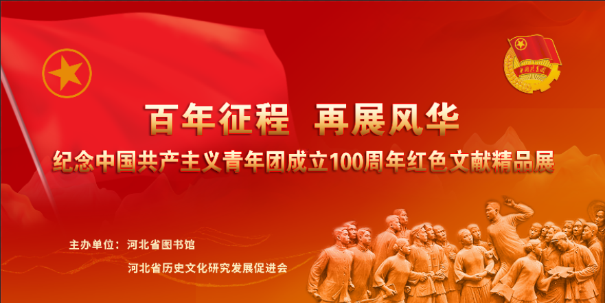 今年是中國共產(chǎn)主義青年團(tuán)成立100周年,為繼承和發(fā)揚(yáng)中國共產(chǎn)主義青年團(tuán)的優(yōu)良革命傳統(tǒng),河北省圖書館、河北省歷史文化研究發(fā)展促進(jìn)會(huì)聯(lián)合舉辦“百年征程 再展風(fēng)華——紀(jì)念中國共產(chǎn)主義青年團(tuán)成立100周年紅色文獻(xiàn)精品展”。展覽已于5月5日在河北省圖書館B區(qū)二樓燕趙紅色記憶館啟動(dòng),展覽將持續(xù)到5月28日。