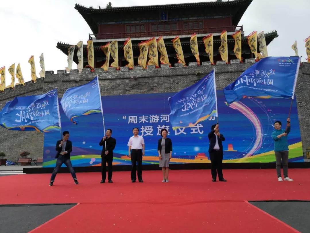 2019年5月19日,“中國旅游日”河北分會(huì)場暨“周末游河北”活動(dòng)啟動(dòng)儀式在石家莊正定古城舉行。省文化和旅游廳廳長張妹芝和石家莊市委常委、正定縣委書記張業(yè)共同為“周末游河北”活動(dòng)合作單位代表授旗,并擊鼓啟動(dòng)活動(dòng)。省文化和旅游廳副廳長王榮麗、石家莊市副市長趙文鋒出席活動(dòng)并致辭。京津冀自駕車俱樂部代表、旅行社、旅游達(dá)人、媒體記者和各地游客千余人參加活動(dòng)??德每毓杉瘓F(tuán)副總經(jīng)理、旅行生活服務(wù)版塊總經(jīng)理劉月初作為嘉賓出席活動(dòng),河北康輝國際旅行社常務(wù)副總經(jīng)理高松上臺(tái)接受授旗。